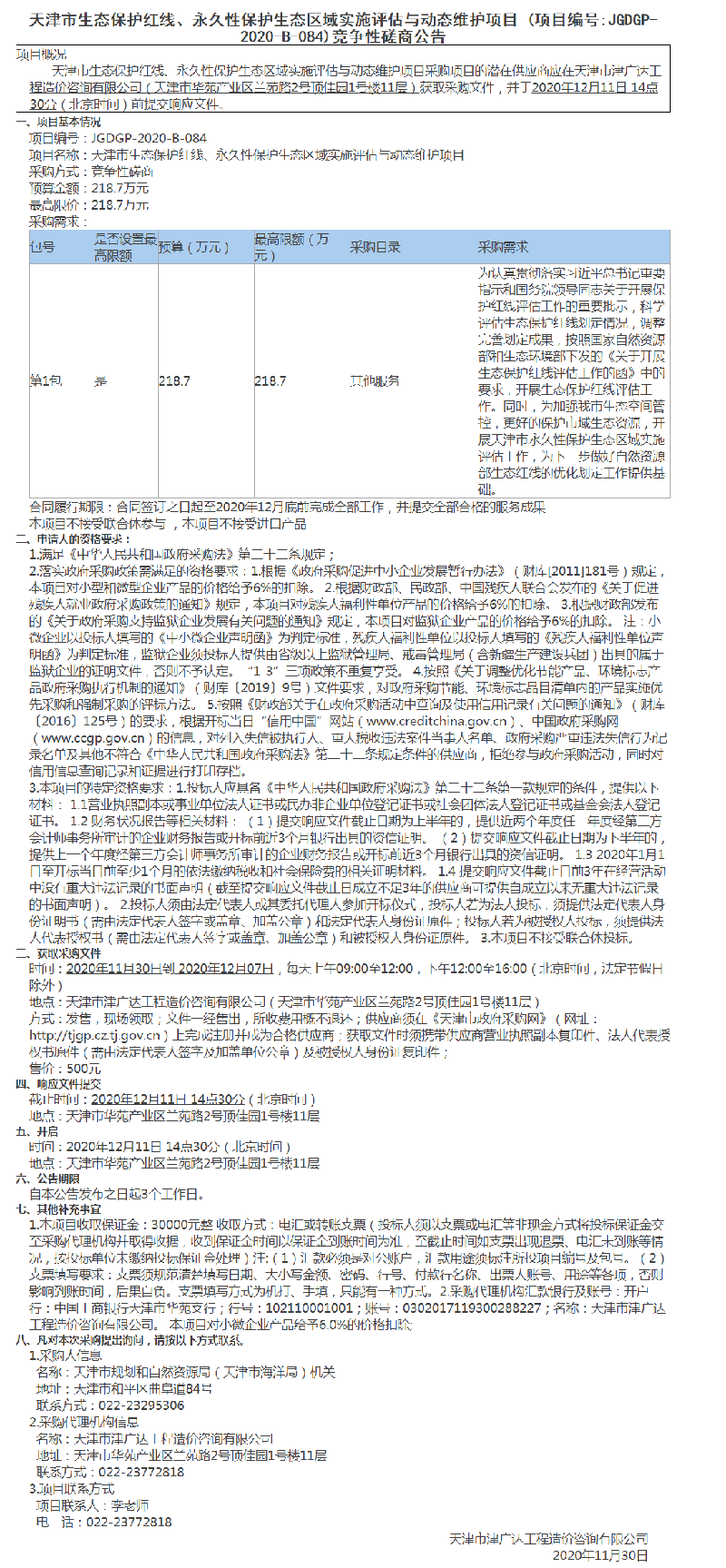天津市生態(tài)保護(hù)紅線、永久性保護(hù)生態(tài)區(qū)域?qū)嵤┰u(píng)估與動(dòng)態(tài)維護(hù)項(xiàng)目