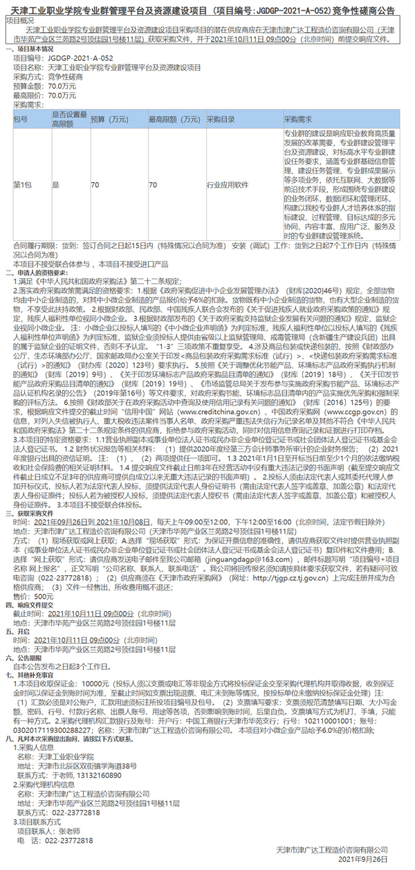 天津工業(yè)職業(yè)學院專業(yè)群管理平臺及資源建設項目
