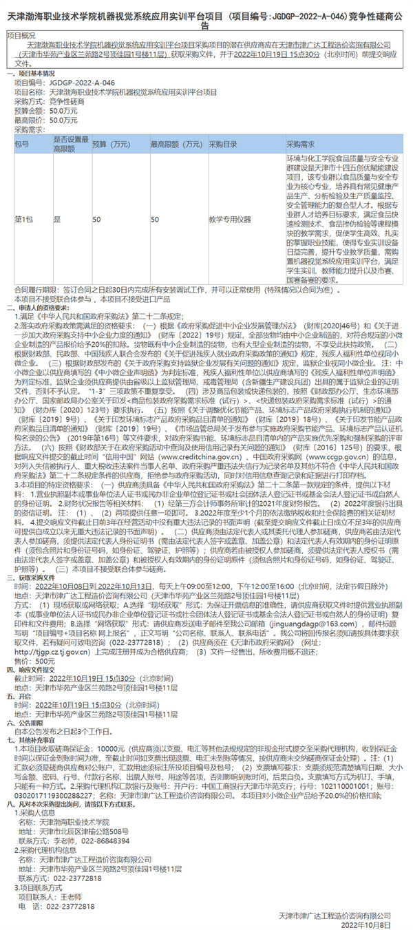 天津渤海職業(yè)技術學院機器視覺系統(tǒng)應用實訓平臺項目