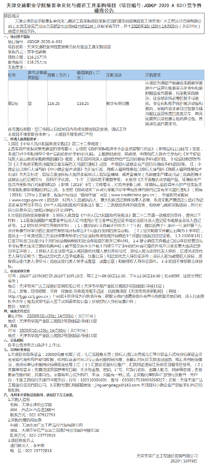 天津交通職業(yè)學(xué)院集裝單元化與搬運工具采購項目